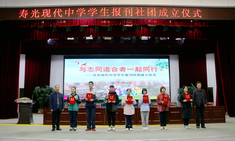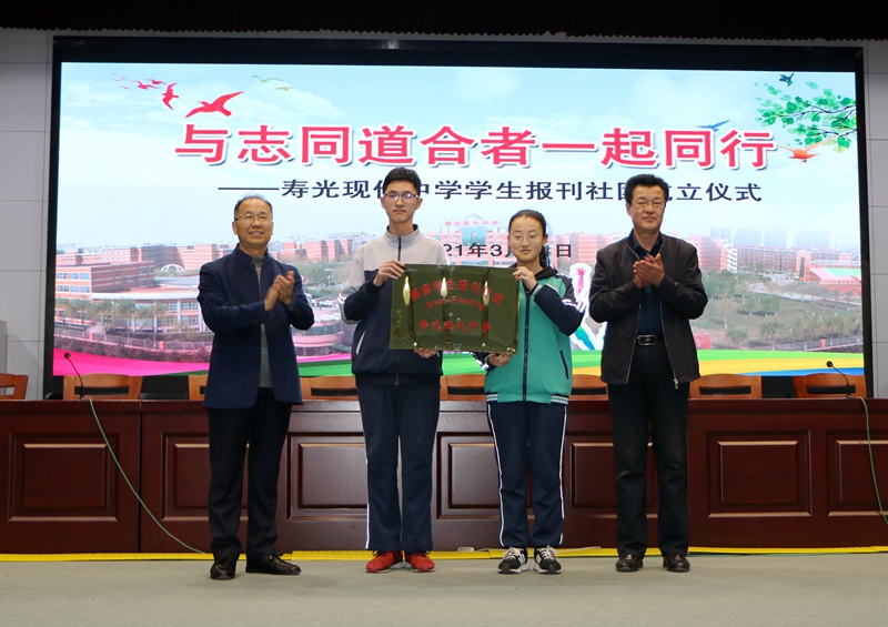 这是一场仪式感满满、意义重大的活动。孙安源校长和杨卫忠副校长为学生报刊社团授牌并为学生社团团长、报刊编辑部主编、副主编颁发了聘书。学生报刊社团的成立,是寿光现代中学发展史上的一件大事,对学校全面实施素质教育,挖掘学生自治管理潜力,推进语文、英语阅读教学改革具有重要的意义,同时,它也是建设和弘扬特色校园文化的又一面崭新的旗帜。新学期,寿光现代中学将以“学生报刊社团”成立为契机,立足个性化,创建品牌化,走向特色化。