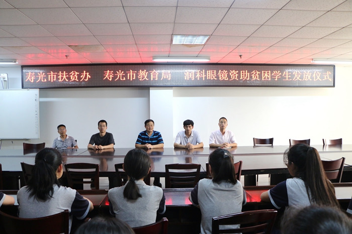 7月5日,由市扶贫办、市教育局、润科眼镜店联合筹办的关爱贫困学子“爱眼行动”捐赠仪式在寿光现代中学会议室举行。市扶贫办及市教育局相关领导、润科眼镜店负责人出席捐赠仪式,寿光现代中学副校长刘茂柏参加并主持了捐赠仪式。学校50名贫困学子接受了捐赠。