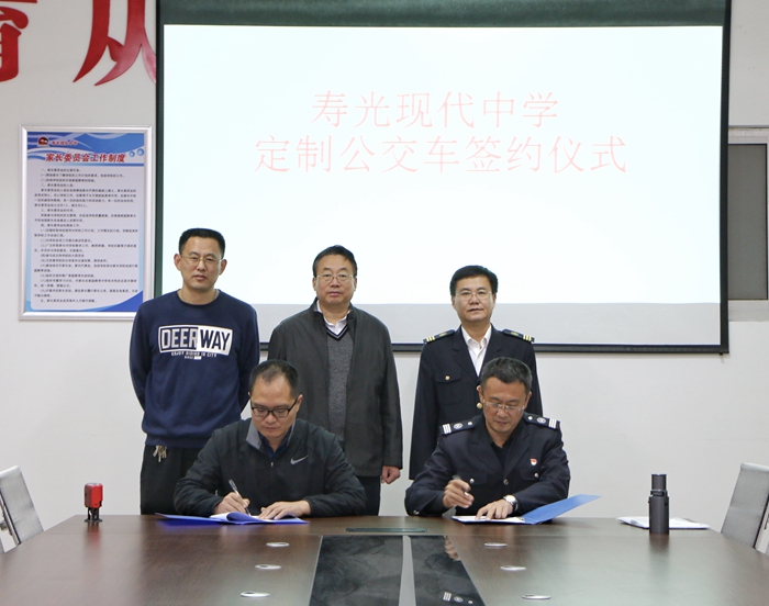 2018年11月2日,寿光现代中学与寿光市交运汽车站运输有限公司正式签订“定制公交”合同。“定制公交”将秉承服务至上的理念,安全出行,绿色出行,为更多学生提供服务和便利。
