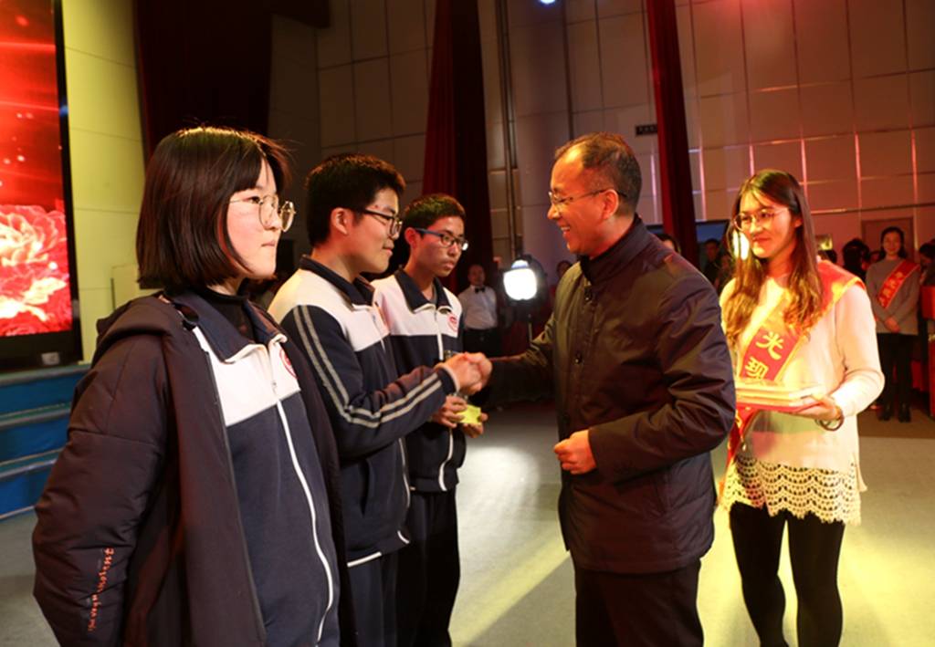 学校校长、党委书记孙安源带领校级班子成员,与全体教职工及高一、高二学生代表欢聚一堂,共迎新春。