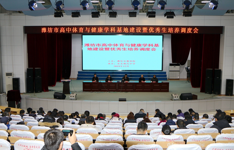 为全面落实新课程和新高考改革,推进“创建‘英才联合学校’,实施1500工程”项目研究,进一步打造潍坊名优生培养的高地,根据潍坊市教育科学研究院的安排,12月19日,潍坊市高中体育与健康学科基地建设暨优秀生培养调度会在寿光现代中学召开。