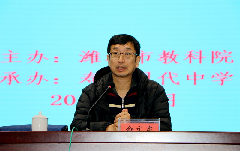 会议由俞文东主任主持,寿光现代中学副校长杨卫忠做学科基地建设汇报。