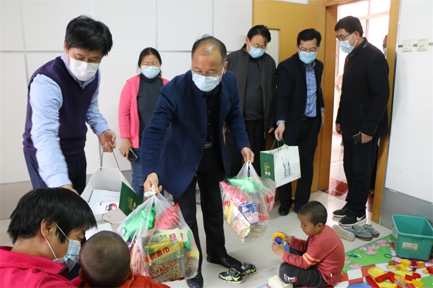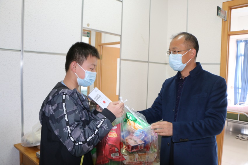 学校为表达这些老师对学校工作的大力支持,4月19日下午,学校校长、党委书记孙安源带领部分校级班子成员带着孩子食品、水果、水杯、牛奶等慰问品分别看望了这些老人、孩子及教职工。对她们为学校的奉献表示了感谢,并仔细询问她们生活上的困难,及时协调解决。
