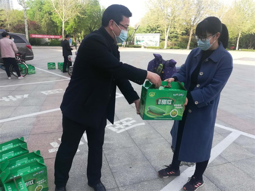 学校实行封闭管理,老师们的在校生活状况和需求成为学校党委的牵挂。为改善在校教职工的日常生活,4月21日下午,现代苑广场,暖心场景再现,学校校长、党委书记孙安源现场调度,学校副校长赵国田,党委委员、高三年级负责人张法国代表学校党委把一箱箱装满香蕉、苹果、甜瓜的“爱心”水果送到每一位参与高三教育教学管理工作的职员工手中,以表达学校党委对他们为学校兢兢业业工作的感谢。