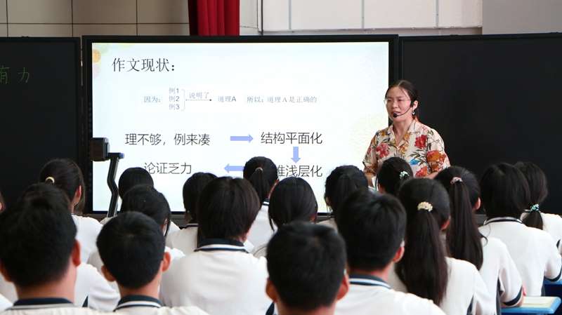 寿光现代中学张淑珍老师就高三作文复习展示了一堂《让论证更有力》的公开课,以经典课文《六国论》《拿来主义》导航引路,引导学生建立论证思维模型,接着又聚焦到段落的论证结构,最后以高考真题进行巩固,立足学生现实,重视写作升格训练,注重学生思辨、整合等高阶思维的发展。