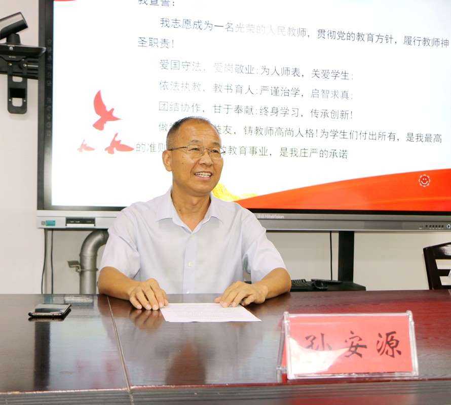 孙安源校长对新入职教师表示了热烈的欢迎,并为大家送上学校精心准备的教育类书籍。他代表学校,以《广阔天地 大有可为》为题,发表迎新讲话。孙校长以三个方面的要求和希望寄语新入职教师:转变角色、迅速融入;善于学习、锤炼本领;守好师德、初心不改。希望大家立足岗位,立足本职,抓住机遇,敬业奉献,在现代,成就更好的自己。