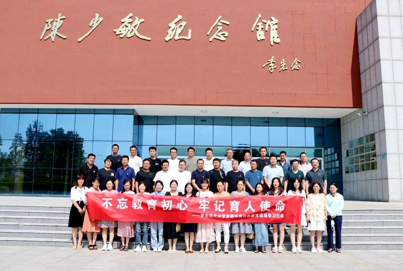 6月24日下午,在中国共产党成立101周年之际,为重温革命历史,增强党员教师党性修养,充分发挥党员先锋模范作用,寿光现代中学副校长张建波、马思敏带领学校部分党员教师参观了红色教育基地——陈少敏纪念馆,实地接受革命传统教育,缅怀革命先烈,以实际行动接受党性锻炼和红色精神洗礼。