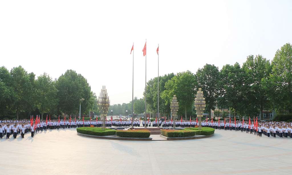 6月20日清晨,伴着第一缕阳光,寿光现代中学高二全体同学齐聚润德楼广场举行庄严的升旗仪式。活动由高二27班马晓涵同学主持。