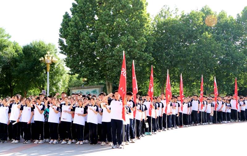 在庄严的国歌声中,国旗护卫队精神饱满,全体师生深情肃立,注视着鲜艳的五星红旗冉冉升起。高二27班张家豪同学发表《激情澎湃 迎战高三》为主题的演讲,他倡导同学们在心态上不问收获、但问耕耘;在知识上夯实基础、扬长补短;在做法上计划条理、执行加倍。他的发言激情澎湃、催人奋进。