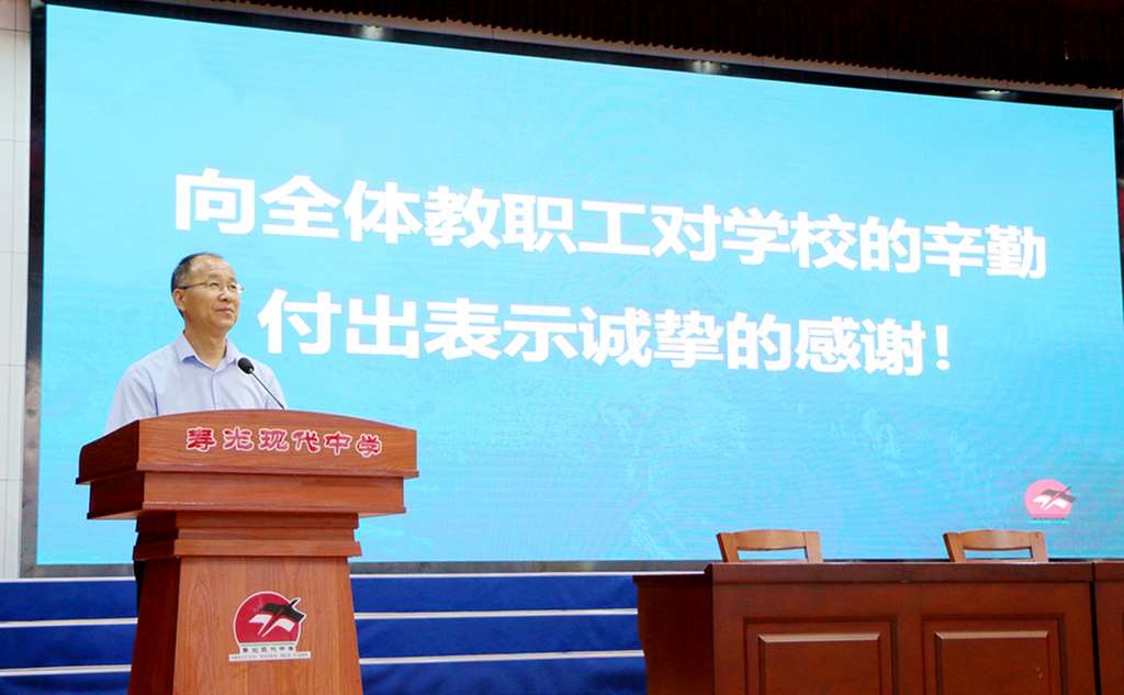 学校领导马思敏宣读了寿光现代中学“七一”红烛先锋评选通知。学校将在“七一”期间评选和表扬一批优秀党支部和优秀共产党员,激励全体教职工勤勉敬业、追求卓越。