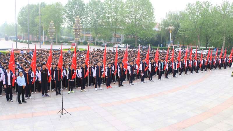 在高一四部主任任方华的带领下,全体同学高举右手,在国旗下庄严宣誓。一句句掷地有声的宣言,定将化为前行力量,以奋斗、拼搏的青春,创造崭新未来。