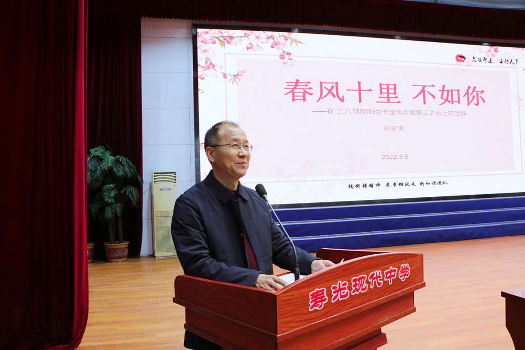 凝聚巾帼力量,绽放智慧风华。3月6日晚上,寿光现代中学庆祝“三八”国际劳动妇女节暨第一届女教职工大会顺利召开。因疫情防控需要,庆祝活动除设置一个主会场外,还设置了三个分会场。学校全体女教职工参会,校长、党委书记孙安源及班子成员出席会议。