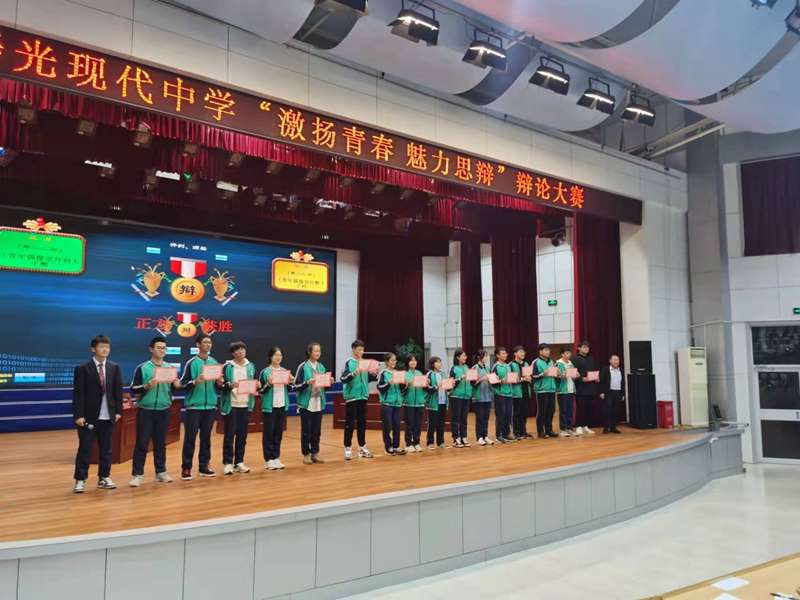 学校党委委员、高二年级负责人赵泽绪、吴福海分别为冠军队、亚军队颁发奖状,此次辩论赛在热烈的掌声中圆满落下帷幕。