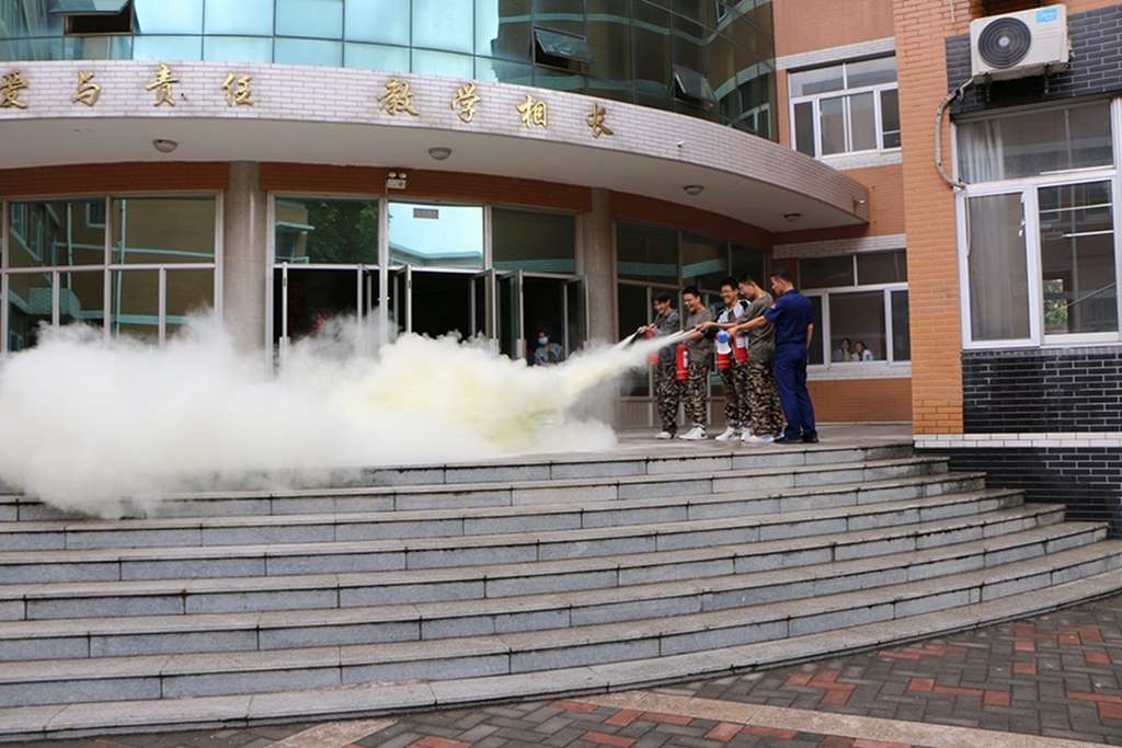 消防指战员对“逃生”活动进行了点评,对全体师生沉着冷静、互相合作的作风进行了肯定。同时,对全体师生进行了消防培训,重点为大家讲解了干粉灭火器的使用知识及注意事项,并现场作了“灭火实战演示”。现场师生很快掌握了灭火器的操作技能,部分同学进行了现场操作与演练。