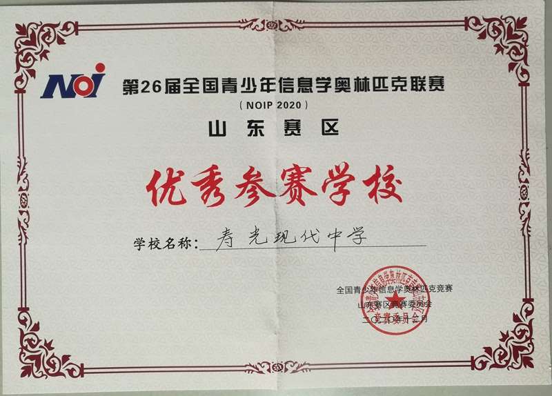 在近两年的信息技术类竞赛中,现代少年火力全开,斩获多项省级、国家级信息技术类竞赛大奖。除以上2021年取得的优异成绩以外,2020年信息技术类竞赛也取得优异成绩:刘明睿同学获信息学奥赛(csp2020)提高组一等奖;杨子涵和冯浩洋两名同学作为潍坊市NOC大赛唯一一支高中队伍代表山东省挺进国赛,获得国家级二等奖的优秀成绩。学校取得的成绩在整个山东赛区遥遥领先,在全国范围名列前茅!