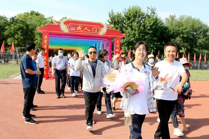 学校校长、党委书记孙安源带领学校领导班子及教师代表站立在成人门两侧,共同见证了这一最珍贵、最灿烂的青春时刻。十八岁,当挥斥方遒、中流击水、不畏艰险;十八岁,当仰望星空、遇见光明、梦想闪耀……真正的成长,从此刻开始。
