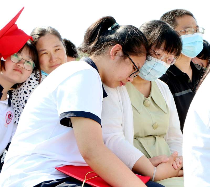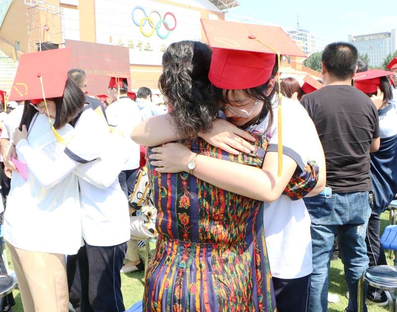 “校长,谢谢您!”“妈妈,我爱您!”学生们将自己写的“一封信”交到老师或家长手中,以90度的姿态鞠躬行“拜谢礼”,并与他们真情拥抱,家长们眼含热泪见证了孩子的成长。此刻,老师与家长的心情是一样的,因为孩子的成长、成人,心中满含感动和欣慰。