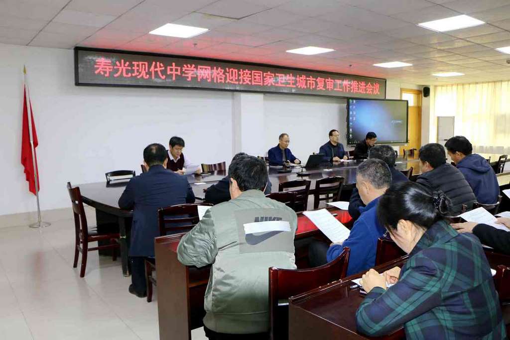 3月22日,寿光现代中学召开迎接国家卫生城市复审工作推进会,对所负责第八网格迎卫复审工作进行安排部署。学校校长、党委书记孙安源及现代中学网格四个小网格组长、成员参加会议。