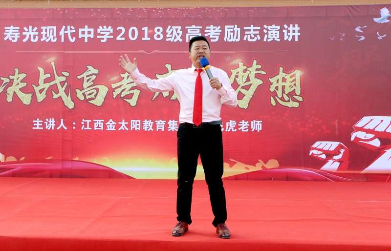 为让高三学子进一步明确高考奋斗目标,坚定高考必胜信心,激发学习潜能,勇逐人生梦想,10月25日下午,寿光现代中学2018级全体师生在学校体育场隆重集会,邀请中国著名青年励志演说家杨飞虎老师作了题为“决战高考,成就梦想”的励志演讲。活动由学校党委委员、高三年级包级校长张法国主持。