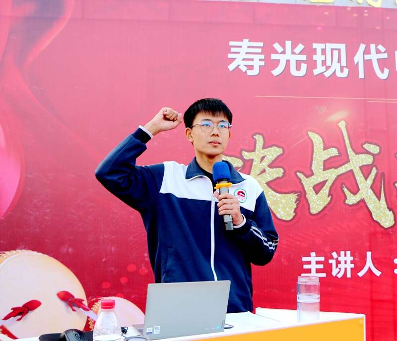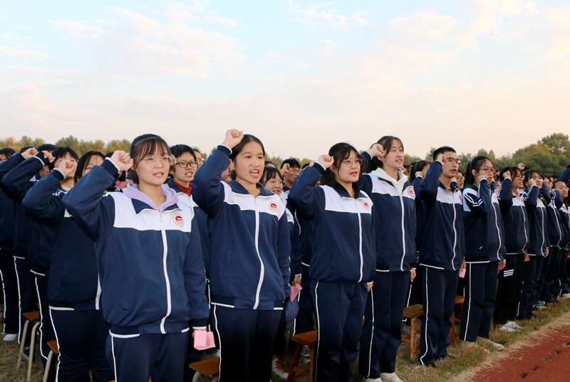 学生代表隋月峰带领全体学生宣誓,铮铮誓言响彻校园,激发出同学全力冲刺、高考必胜的澎湃激情,现场气氛达到高潮。
