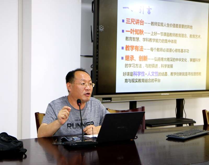 第三项,解读学校文化理念。学校党委会成员、文化研究中心马思敏同志以“以文化立校 以精神育人”为题,详细解读了学校“人文景观文化”、“核心文化价值体系”、“制度文化”三大文化体系。培训第一课先讲“文化”,意在涵养师者匠心,厚植教育情怀,培养有文化、有水平、有未来的好老师,这也正是寿光现代中学的坚守和担当。
