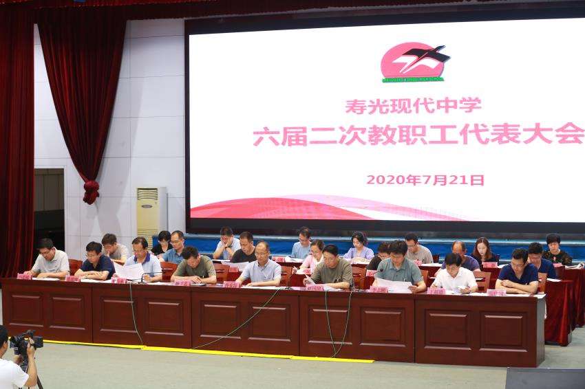 寿光现代中学六届二次教职工代表大会于2020年7月21日--23日在学校报告厅召开。会议由学校党委副书记李志刚主持,校长、党委书记孙安源带领所有党委会成员及代表111人参加,历时三天,会议内容丰富,会议安排规范、严谨、有序,会议成果丰硕。