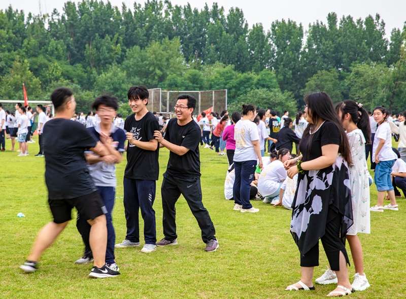 夏日骄阳下,学校校长、党委书记孙安源与学生手拉手做起了游戏,师生开怀欢笑,享受着难得的好时光。班主任老师也加入其中,简单的游戏,在大家的一起参与下,变成了一场别样的狂欢。在拼搏成长的征程上,学会适时地调整和放松,也是每位学子的成长课题。