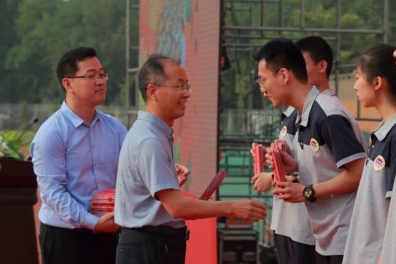 担当青春责任,不断奋勇向前。校长、党委书记孙安源与年级负责人张法国为学生颁发毕业证书,祝贺同学们完成学业,走向新的人生征程。
