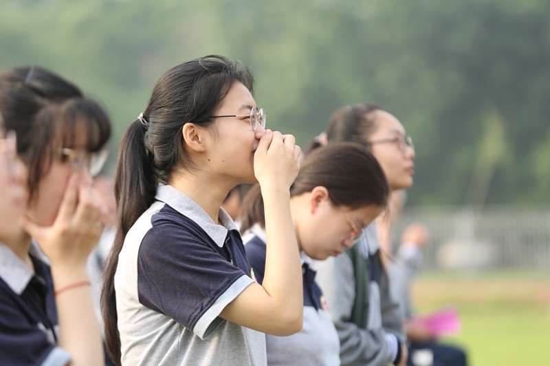 雄壮有力的国歌声响起,全体起立,仰望五星红旗庄严升起,同学们用青春激情迎接青葱年华庄严的人生典礼。