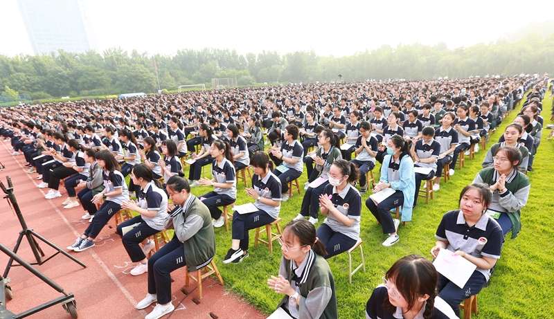 高三年级负责人张法国致辞,他说,这一届高三学生比以往任何一届都特殊,感恩逆行者,感恩奉献者,感恩志愿者,我们回到了学校。这个时候,你学习的态度、你的行动决定了你的未来。希望大家在接下来30天时间里,用态度、干劲、实力证明一切!