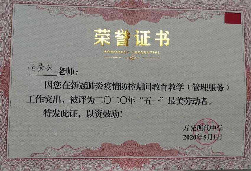在学校首届“五一”最美劳动者颁奖大会上,门玉焕和张秀玉老师并驾齐驱,双双获奖,这是对他们工作态度和工作业绩的最佳证明。