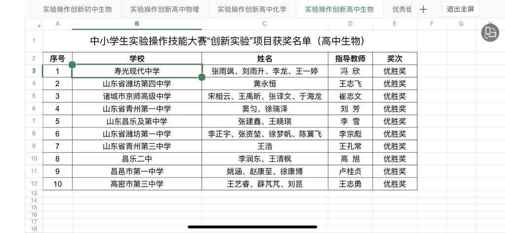 近期,潍坊市中小学生实验操作技能大赛“创新实验”项目获奖名单公布,我校共有8名高一学生获得优胜奖(该项目只设优胜奖),列高中组潍坊市第一名。