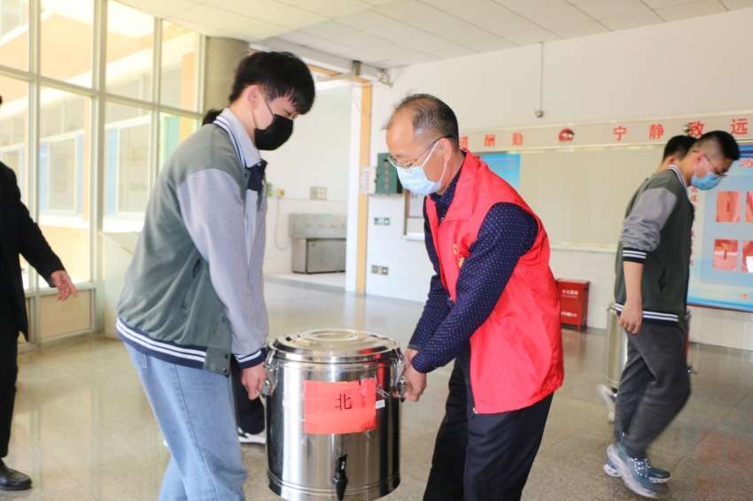 复学当天,全体干部教师身穿标志性志愿者服装“红马甲”,早上5:30吃早餐,6:10进入了工作程序,中午来不及休息,正午12点就上岗,直到下午6:30结束,连续工作接近12个小时,保证了高三全体同学有条不紊、安全顺利的进入学校,的确令人感动和佩服,当天的“现代红”成为了现代苑内外最靓丽的一道风景。