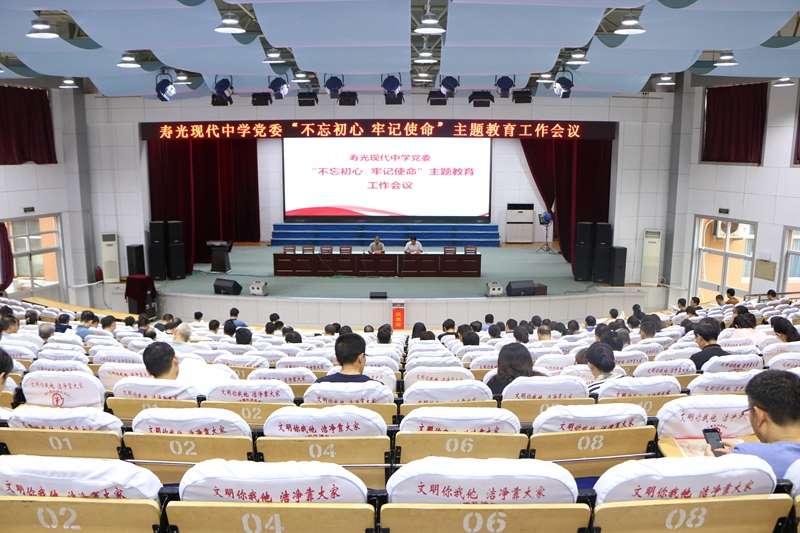 “不忘初心 牢记使命”主题教育开展以来,寿光现代中学党委全面贯彻“守初心、担使命,找差距、抓落实”12字总要求,适时提出了“不忘教育初心,牢记育人使命”的对应性口号,在全校构建起全方位、多层次的主题教育矩阵,坚持落实“六个到位”,确保主题教育全员参与、全面覆盖,取得实效。