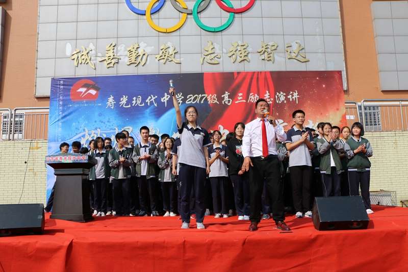 演讲最后,在杨老师的激情带动下,几十名同学争抢着跑上演讲台,在众人面前大声说出自己的名字,并呐喊:我一定要考上理想大学!全场响起雷鸣般的掌声。