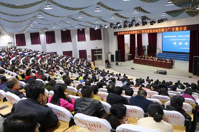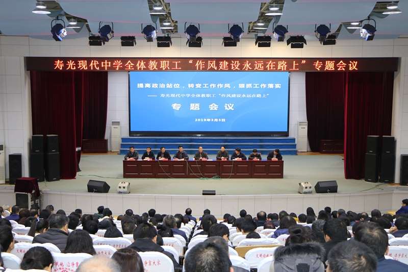 3月3日晚,寿光现代中学在学校报告厅召开加强工作作风建设专题会,进一步严肃工作纪律,落实岗位职责,加强作风建设。学校校长、党委书记孙安源带领学校领导班子出席会议,全体教职工参加会议。会议由学校副校长杨卫忠主持。