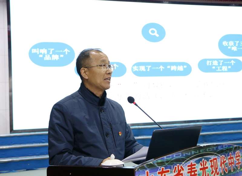 随后,学校校长、党委书记孙安源以“拉家常”式的风格,做了题为《做努力奔跑的追梦人》的致辞。孙校长从2018年重点工作及成绩、学校愿景及重点实施路径、2019年初步设想、假期建议等四个方面娓娓道来,团拜会现场气氛热烈、融洽。谈到2018年的工作,孙安源校长总结出了“五个一”:叫响了一个“品牌”;丰富了一个“理念”;实现了一个“跨越”;打造了一个“工程”;收获了三个“唯一”。孙校长说,寿光现代中学2018年的成绩可圈可点,收获来之不易,学校的每一点进步,工作的每一项进展,都凝结着全校教职工的心血和智慧,是全校教职工团结一心、共同奋斗的结果。