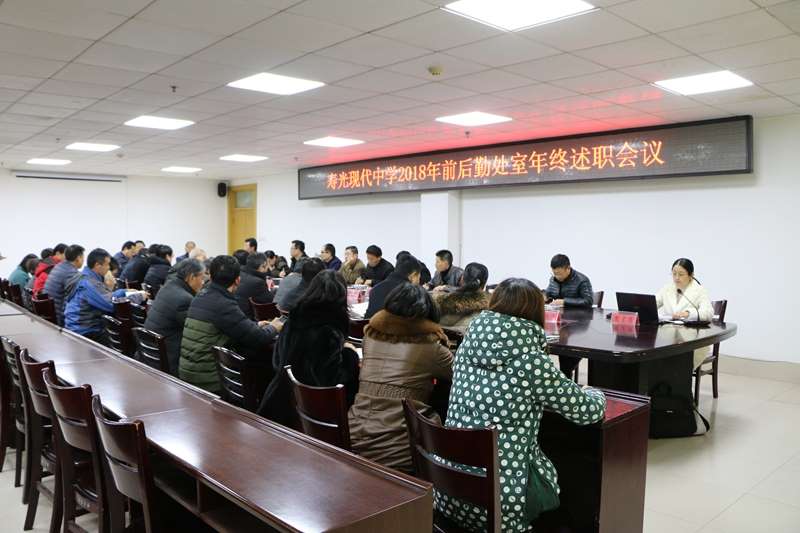 为更好的总结成绩,反思不足,创新未来,1月17日下午,寿光现代中学在二楼会议室举行了“2018年度处室工作述职评议”会议,学校校长、党委书记孙安源带领学校领导班子出席了会议,前后勤各处室中层副职以上人员参加了会议。会议由副校长赵国田主持。