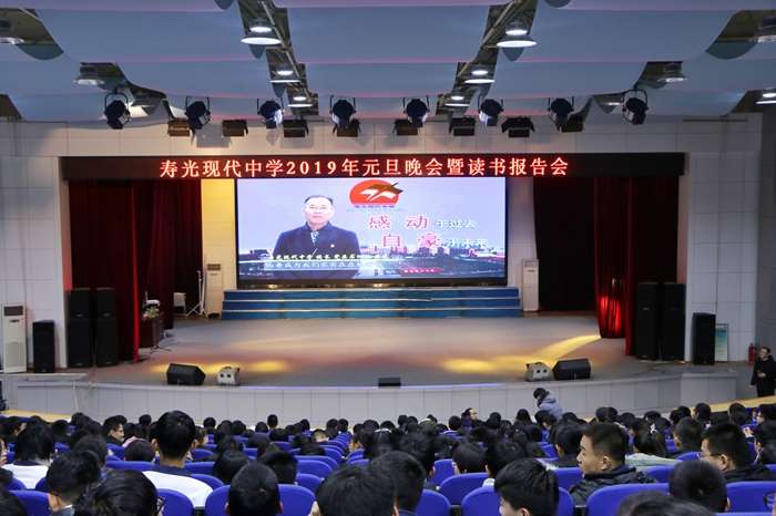 晚会伊始,学校校长、党委书记孙安源以“让新年的阳光照亮我们的梦想”为题,通过视频形式为同学们、老师们、家长们送上了的新年寄语和祝福,并鼓励全体师生勿忘来路、不负明天,为开创寿光现代中学更加美好的2019年而砥砺前行,努力拼搏。