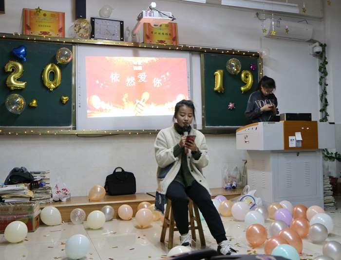 同学们精心地布置了晚会会场,教室里流光溢彩,斑斓艳丽,仿佛变成了梦幻的舞台。这个夜晚,师生们相聚在这里,享受青春的欢乐和美好的时光;这个夜晚,师生相聚在这里,用嘹亮的歌声和绚丽的舞姿揉成一束温馨而难忘的记忆!