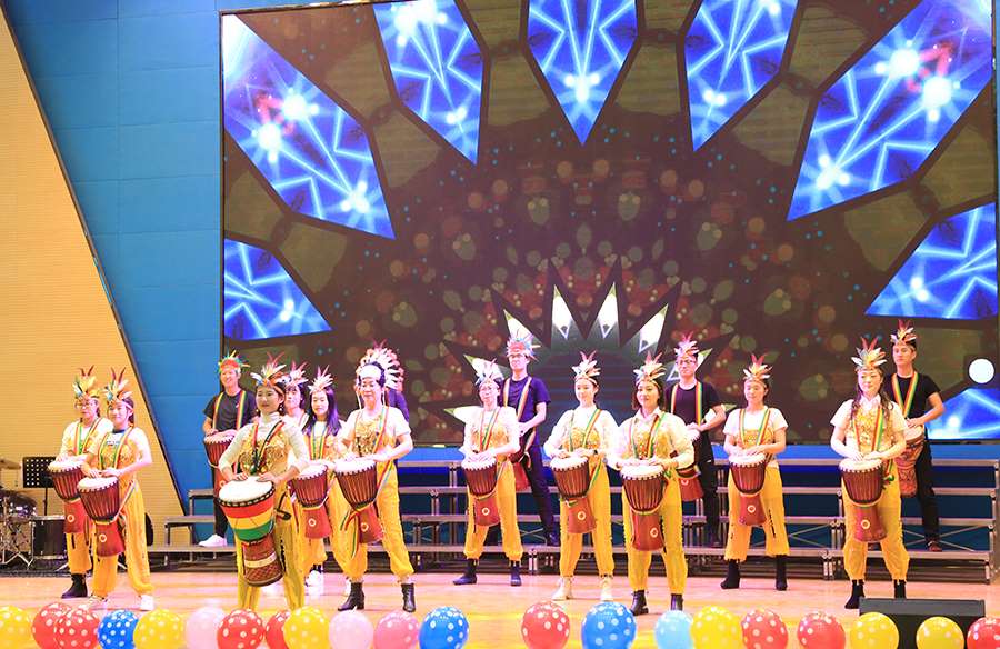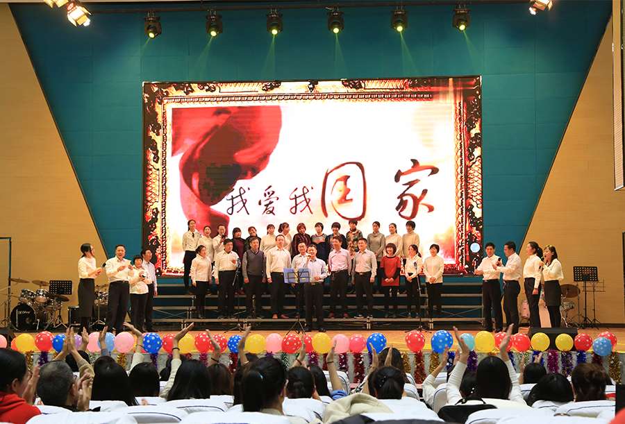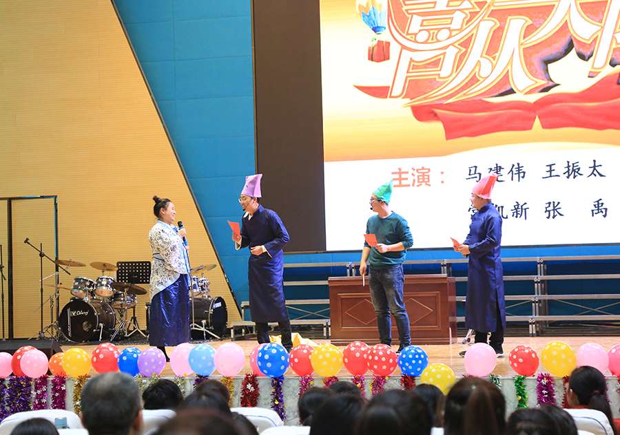 又到辞旧迎新时,12月21日下午,现代中学东校区全体老师齐聚一堂,喜迎新年。联欢会上歌声悠扬,舞姿蹁跹,学校各学部及行政组“各显神通”,自编、自演、自排的近30个节目有歌舞、小短剧、戏曲、朗诵、合唱、独唱……轮番上阵,充分展现了东校老师们的创意和活力。在《生日帽蒙眼踢毽子》、《你比我来猜》、《疯狂猜歌名》等游戏环节,老师们有趣搞笑的表现让全场笑声掌声不断。整场晚会,歌声、笑声、掌声、欢呼声交融在一起,全体教职工的希望与热情都在此刻被点燃,欢乐的气氛洋溢在礼堂的每一个角落,笼罩着每一位教师,2个多小时的欢声笑语给全体教师留下了美好的记忆。