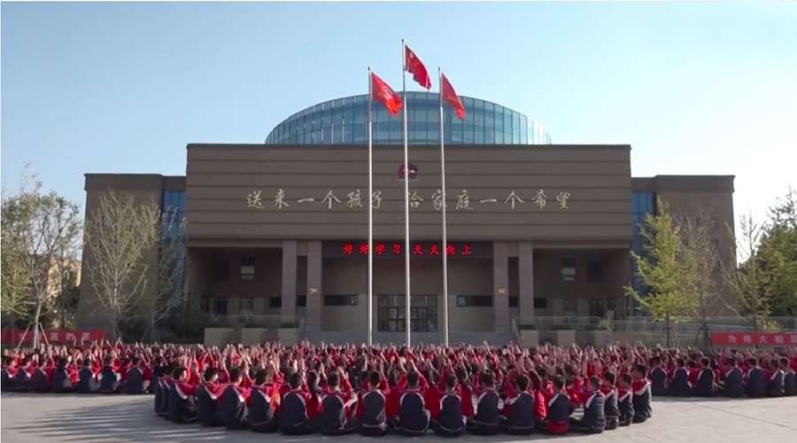 七八年级年级近800名同学用双手和杯子拍打出整齐节拍,跟随音乐的节奏变化独特队形,展示出创意、动感的画面,释放青春活力。