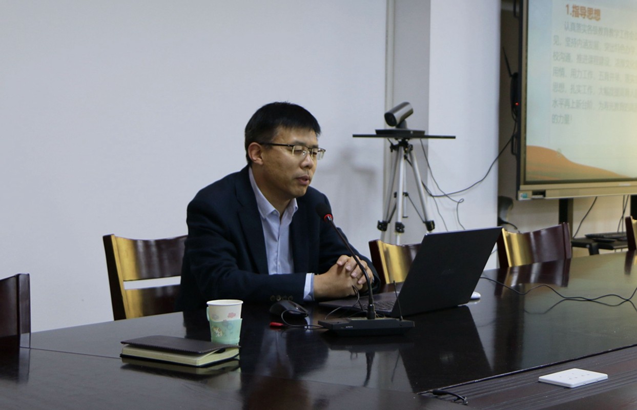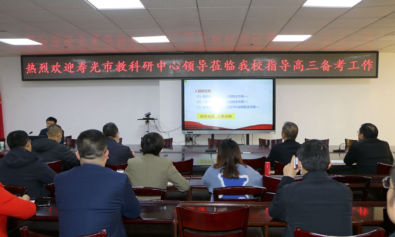 在会议室,学校副校长张建波以“精雕细刻抓管理 凝心聚力抓教学”为题,从推进高效课堂、探索优生优培、建设和谐校园、打造一流教师队伍等方面,向视导组做了高三备考工作汇报。他分析了当前高考备考中存在的不足、应对措施以及未来备考工作展望,热切希望视导组给高三精准“诊脉”,开出“良方”。