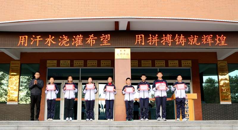 伴随着激昂的国歌声,庄严的五星红旗在校园冉冉升起。国旗下,主持人宣读期中考试“单科状元”“十佳学生”名单。学校党委委员、初高中贯通培养负责人张会智,贯通班负责人刘鹏,九年级级部主任孙传轩,七年级级部主任董晓坤依次上台为获奖学子颁奖。