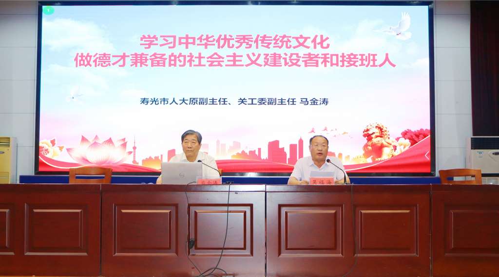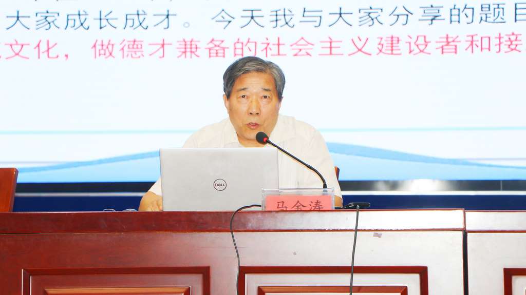 为丰富校园文化生活内涵,传承和培养现代学子对传统文化的兴趣,激发广大师生民族文化自豪感与自信心,10月11日下午,学校邀请寿光市人大原副主任、市关工委副主任、市传统文化领导小组资深顾问马金涛先生到校作传统文化专题讲座。学校党委委员、副校长吴福海主持活动。