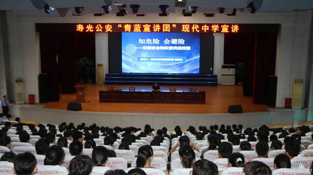 为增强学生安全防范意识,提升自我保护能力,9月14日,现代中学邀请寿光公安“青蓝宣讲团”成员进校园,开展主题宣讲活动。高一年级部分师生参加活动。