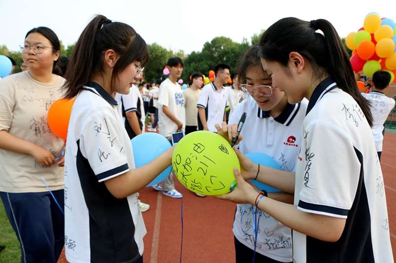 “放飞梦想”将本次减压赋能活动推向高潮,同学们把自己的心愿和期许写在氦气球上,放飞!操场的上空瞬间被同学们的“梦想”装扮的五彩斑斓。当一个个承载着学子们希望的气球最终汇聚在远方的时候,大家欢呼着、雀跃着,此起彼伏的加油声,预祝着本届高三学子梦想成真,蟾宫折桂,金榜题名!
