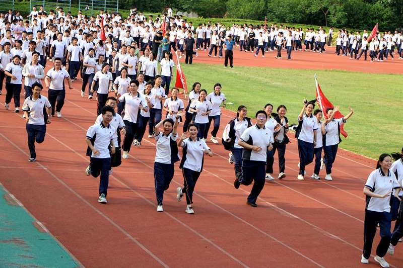 此时,高一年级学弟学妹们在体育场摆出了“现代必胜”的人字造型,为学哥学姐加油助力。“在考前组织这样的活动,一是‘减压’,二是‘赋能’,目的就是让同学们以更积极的心态迎战高考。”我校心理教师李百芹说。