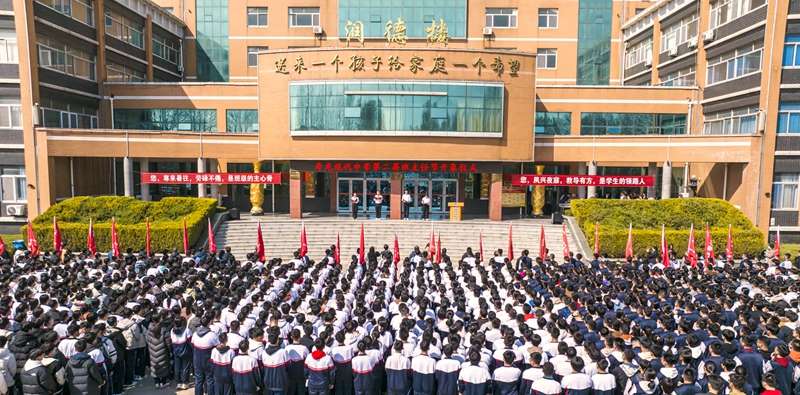 三月暖阳,春风拂面。26日上午,学校第二届班主任节开幕式在润德楼广场举行。校长孙安源及校级领导班子、全校班主任、全体同学参加。高哲鲁延、桑煜凯两名同学主持仪式。