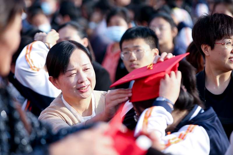 孙安源校长带领学校领导班子站立在成人门两侧,共同见证了同学们最珍贵、最励志的青春时刻。
